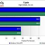 Sono stati effettuati dei test su giochi molto famosi quali Crysis, Far Cry 2, Clear Sky e World in Conflict su una macchina molto potente con processore Intel Core i7-870 da 2,93 GHz e 8 MB di cache e una scheda video XFX GeForce GTX 285. Crysis per esempio gira meglio su 7 ma solamente di pochissimi punti percentuali batte Vista, Far Cry è identico su uno e l’altro OS. Clear Sky e World in Conflict invece girano meglio sotto 7, segno che qualche passo in avanti è comunque stato compiuto.